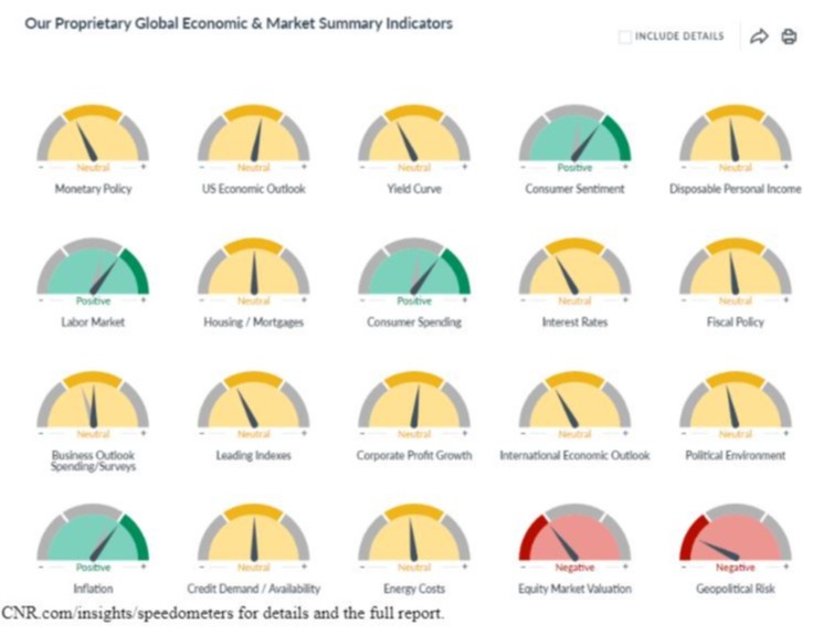 Green in time for spring! Enough progress occurs among CNR’s 20 indicators to click towards growth! Even equity market valuations are on “the line” towards better valuation. Smile and breathe a little more ease. Keep reading about equity markets below…..